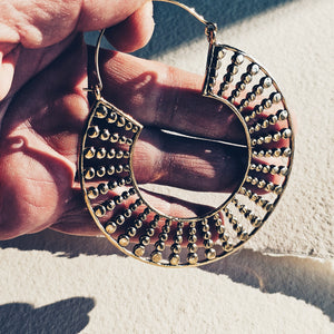 Discover the “Spheres” Hoop Earrings, a bold, handcrafted interpretation of the classic hoop, designed for the modern wearer. These sculptural earrings feature a striking arrangement of rounded beads and dots encircling each hoop, creating rhythm, texture, and contemporary impact.